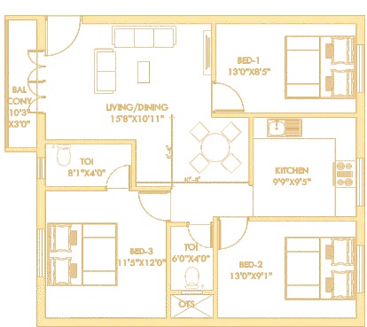 4BHK: 2860 to 3390 sqft.